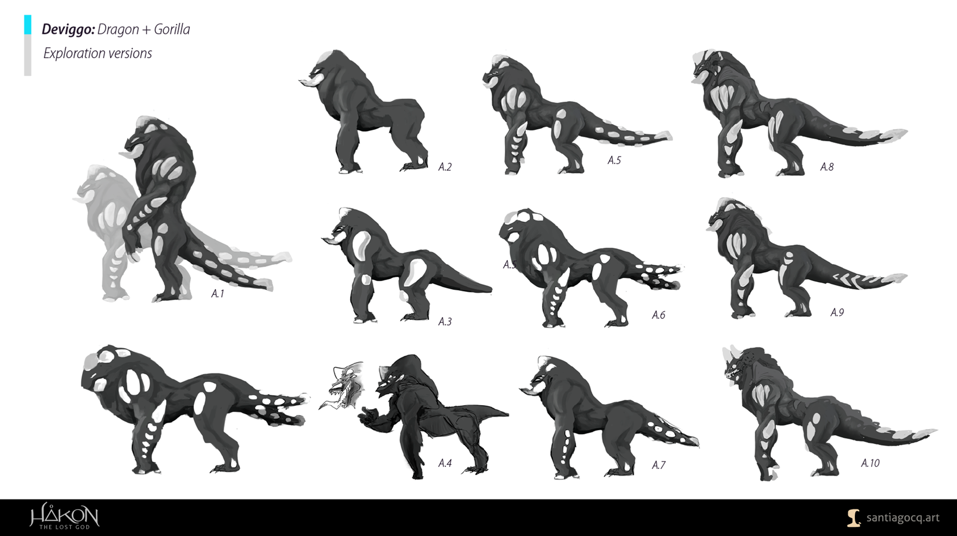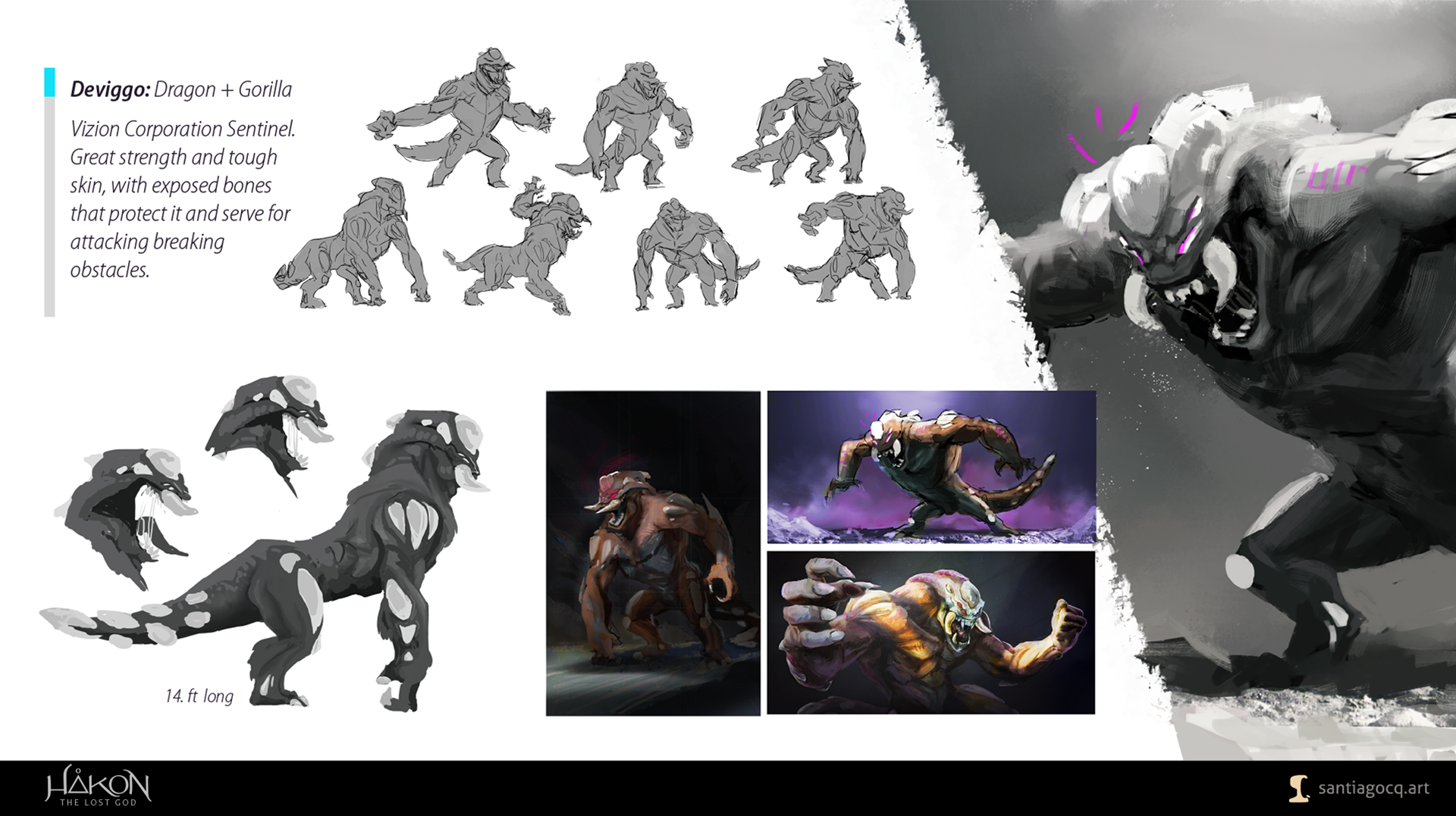 this the second creature created with a dragon and a gorilla, I was thinking about a striking creature with heavy musculature and protective exposed bones.